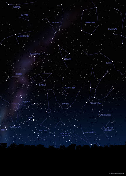 Alle Sternbilder rund um den kleinen Bären und den Polarstern auf einem Poster!